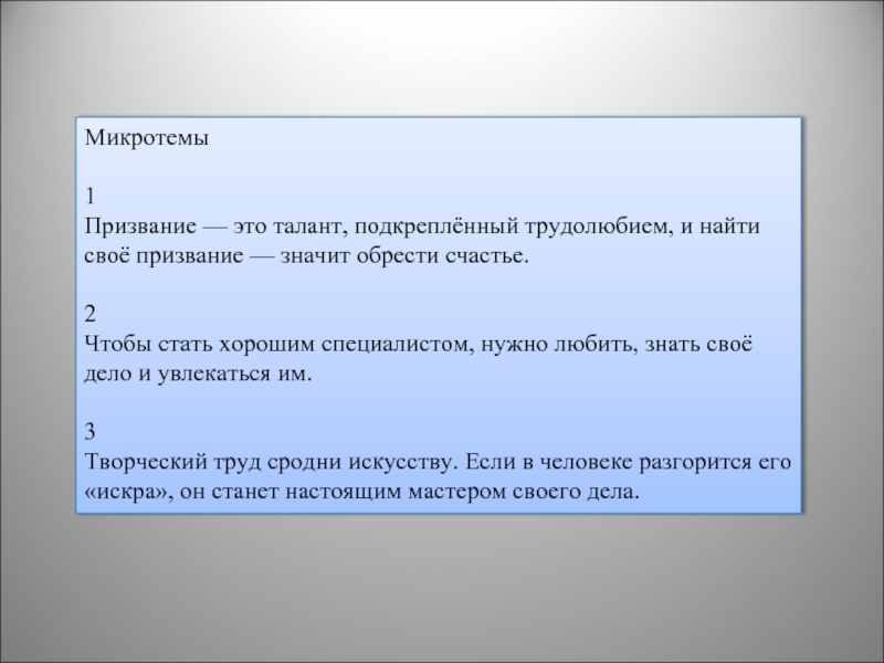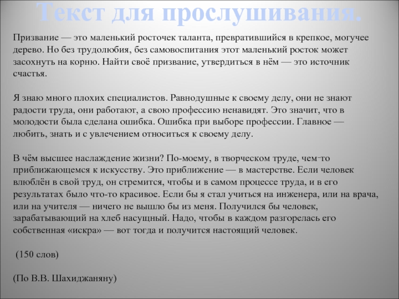 Но без трудолюбия, без самовоспитания этот маленький росток может засохнуть на корню. Найти своё призвание, утвердиться в нём — это источник счастья.