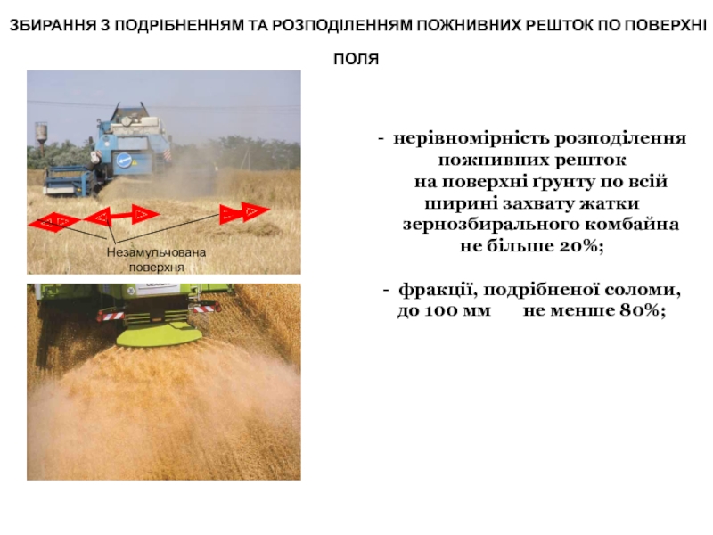 Слайд 19ЗБИРАННЯ З ПОДРІБНЕННЯМ ТА РОЗПОДІЛЕННЯМ ПОЖНИВНИХ РЕШТОК ПО ПОВЕРХНІ ПОЛЯ