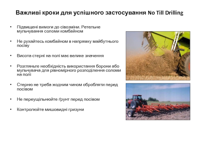 Слайд 21Важливі кроки для успішного застосування No Till Drilling
