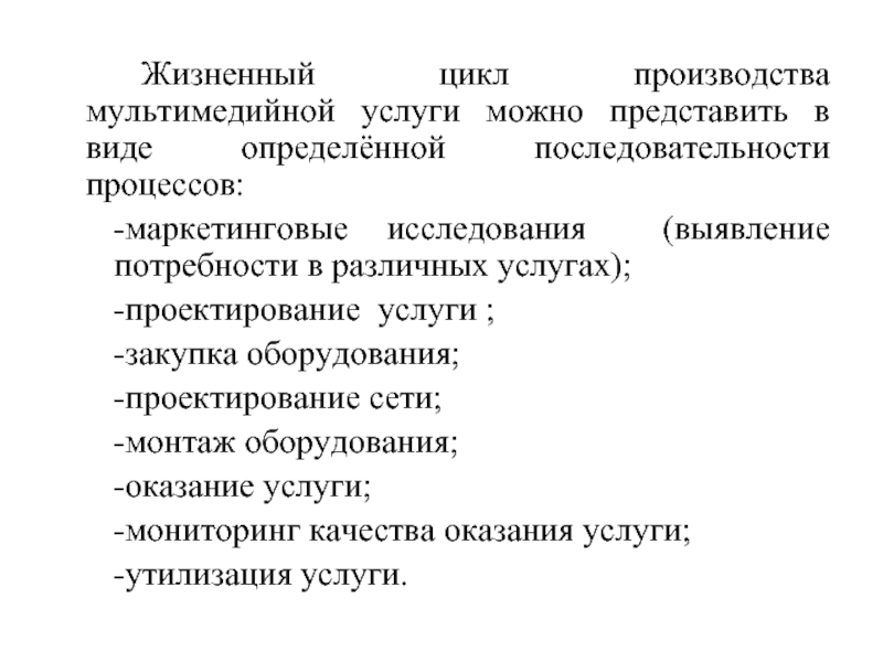 Слайд 30 Жизненный цикл производства мультимедийной услуги можно представить в виде определённой последовательности