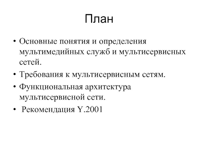 к мультисервисным сетям. Функциональная архитектура. Рекомендация Y.2001 2Лекция