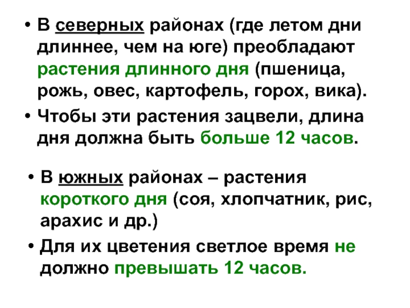 В южных районах – растения короткого дня (соя, хлопчатник, рис, арахис и др.)