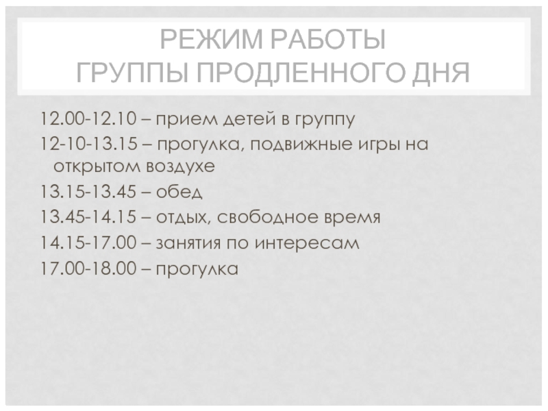 Слайд 5РЕЖИМ РАБОТЫ ГРУППЫ ПРОДЛЕННОГО ДНЯ