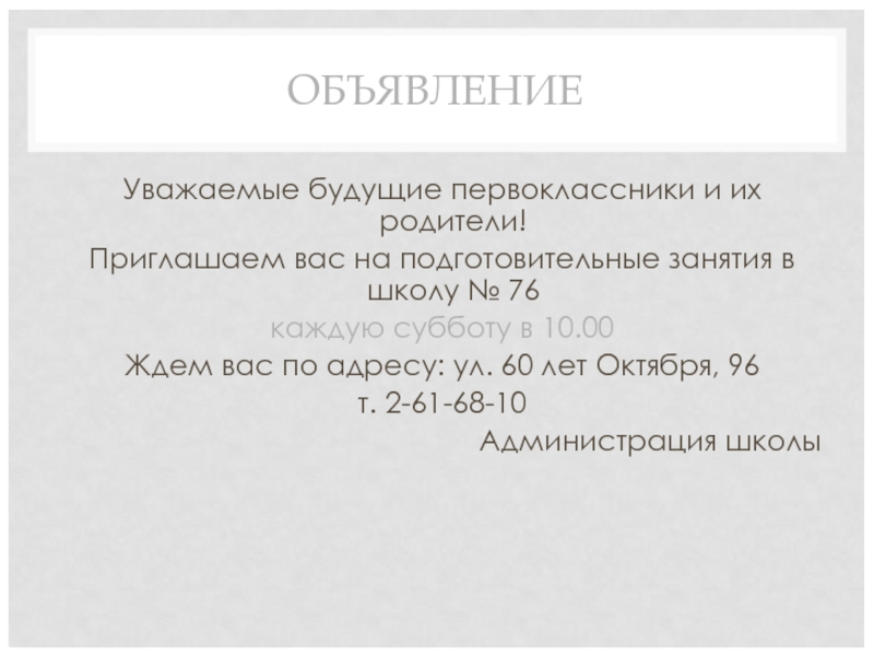 Слайд 2ОБЪЯВЛЕНИЕ