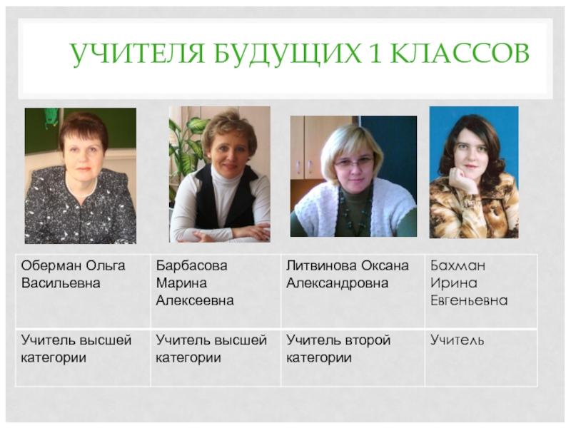 Слайд 4УЧИТЕЛЯ БУДУЩИХ 1 КЛАССОВ