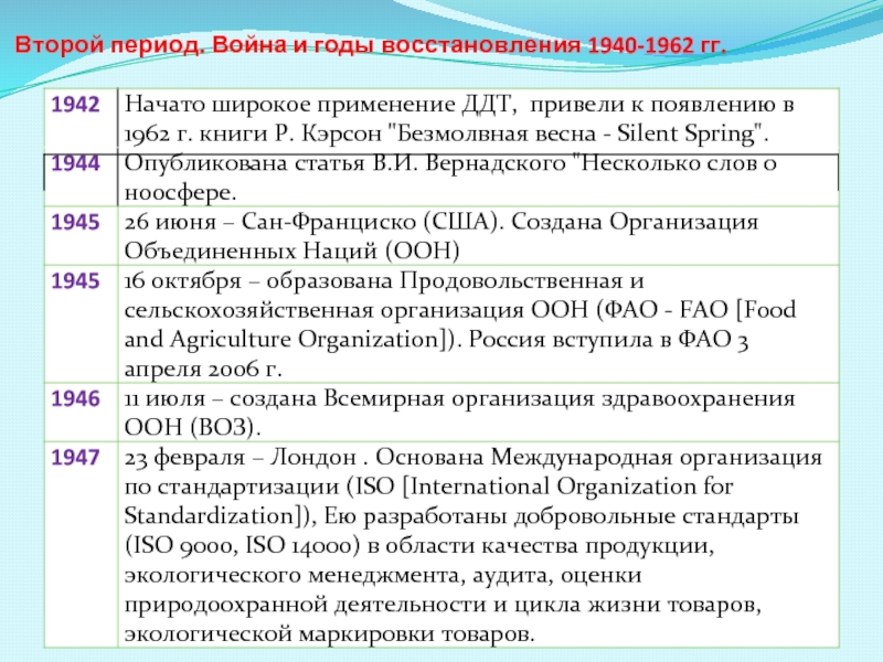 Слайд 8Второй период. Война и годы восстановления 1940-1962 гг.