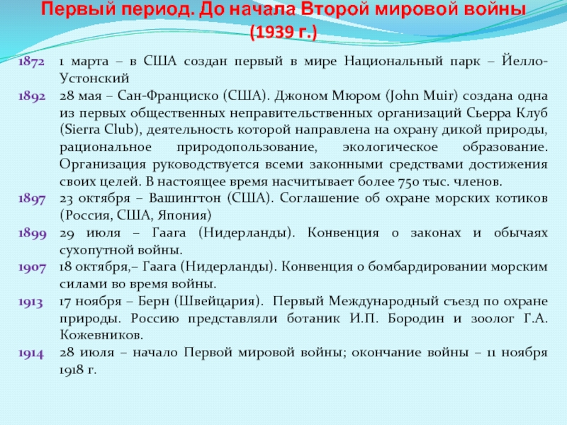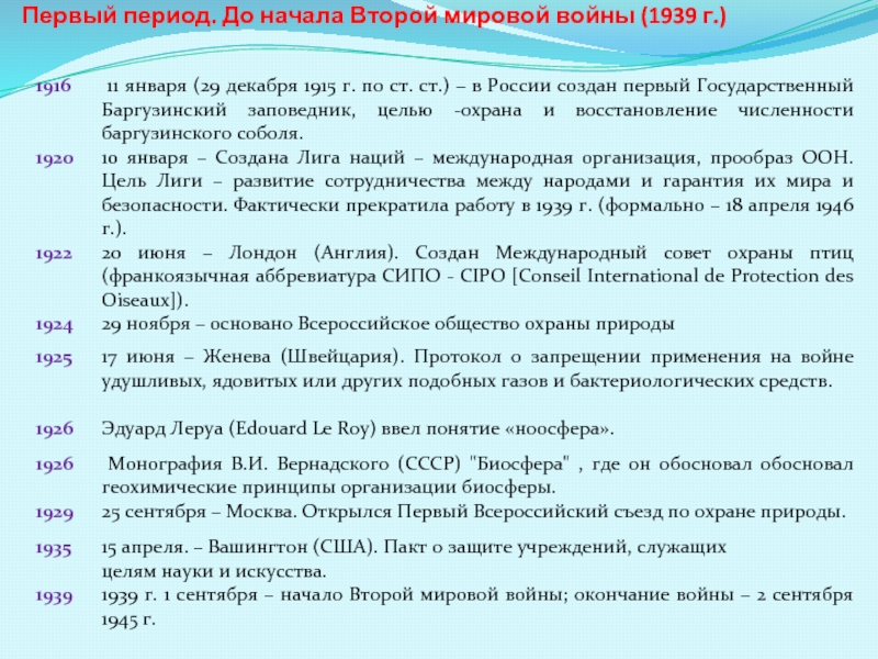 Слайд 6 Первый период. До начала Второй мировой войны (1939 г.)