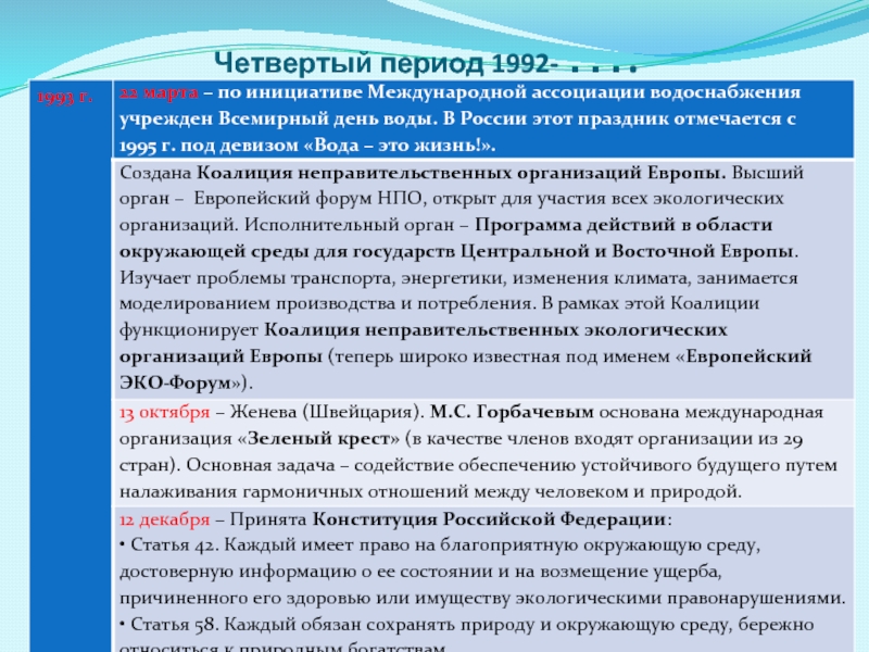 Слайд 15Четвертый период 1992- ….