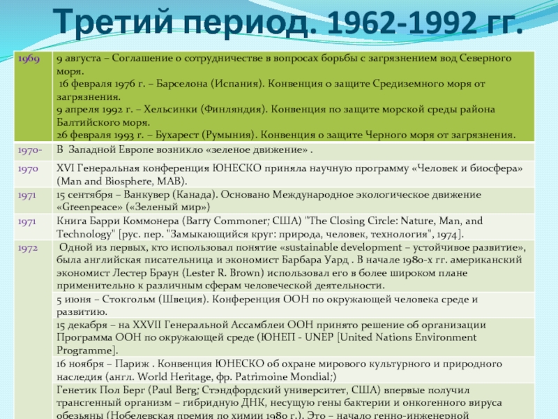 Слайд 13Третий период. 1962-1992 гг.