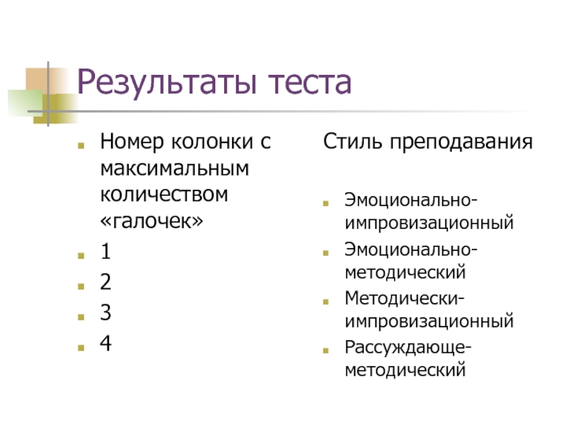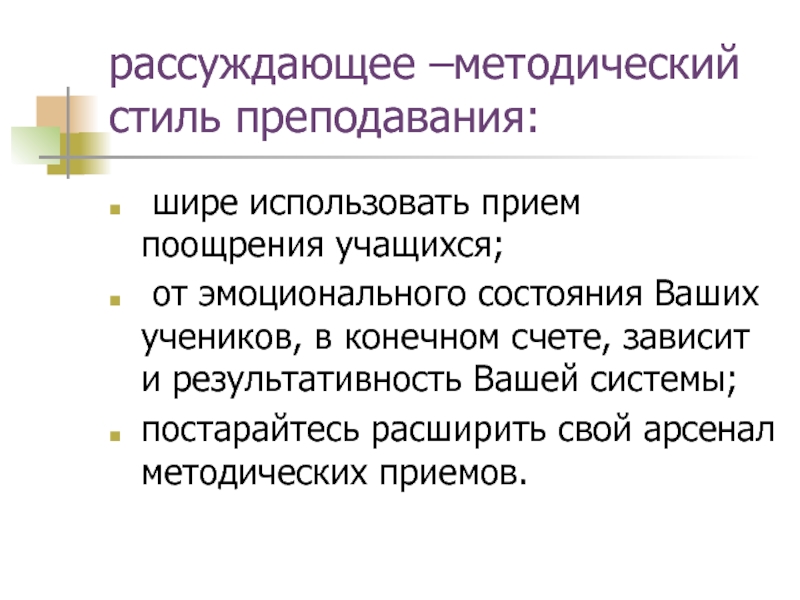 Слайд 30рассуждающее –методический стиль преподавания: