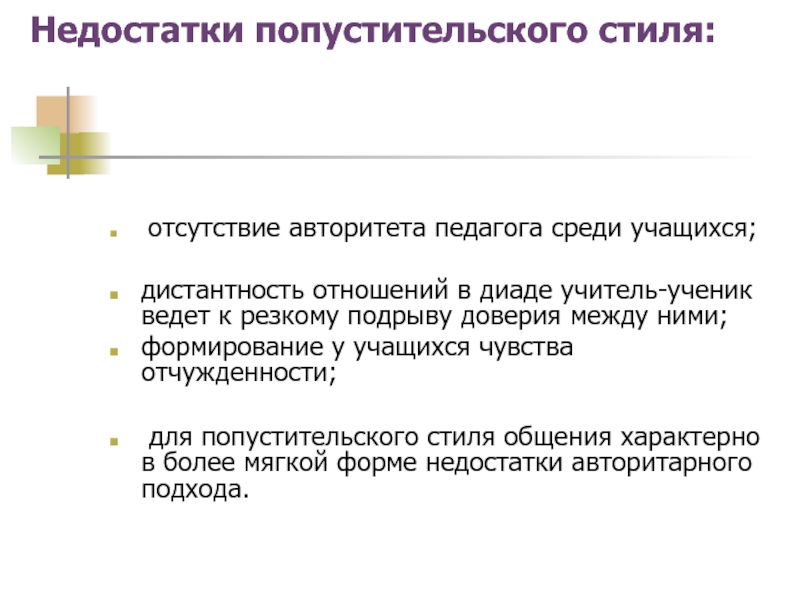Недостатки попустительского стиля: