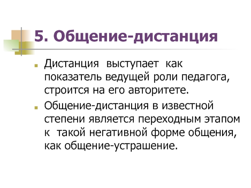 Общение-дистанция в известной степени является переходным этапом к такой негативной форме общения, как общение-устрашение.