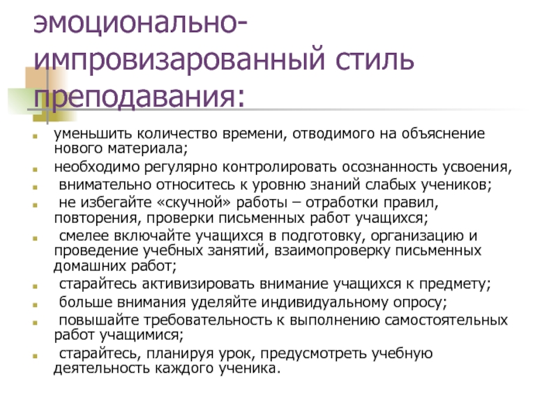 Слайд 27эмоционально-импровизарованный стиль преподавания: