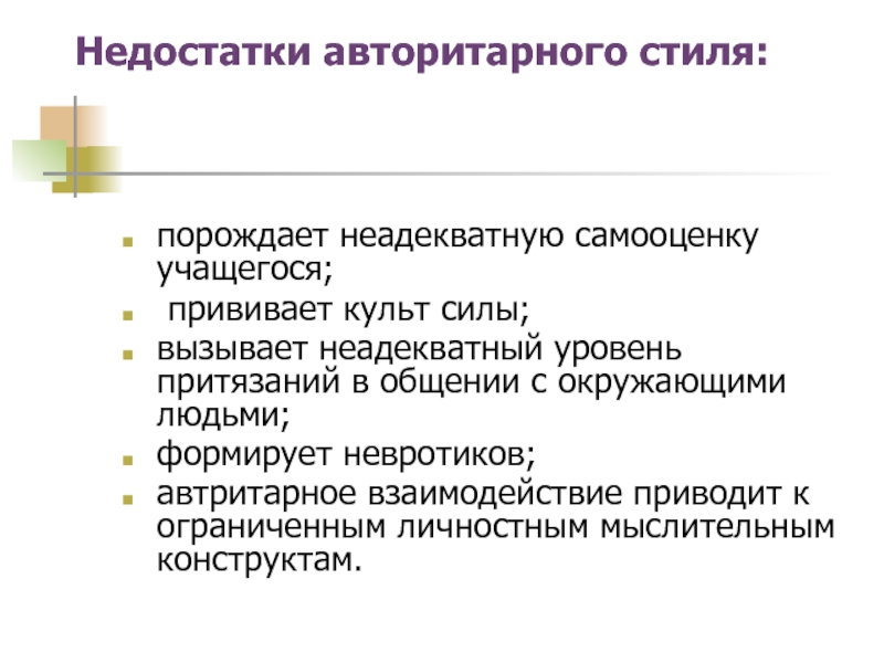 Недостатки авторитарного стиля: