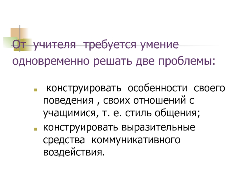Слайд 6От учителя требуется умение одновременно решать две проблемы: