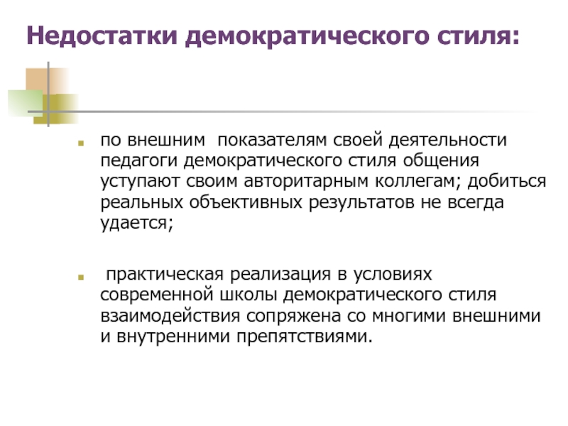 Недостатки демократического стиля: