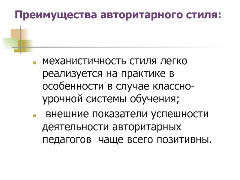 Преимущества авторитарного стиля: