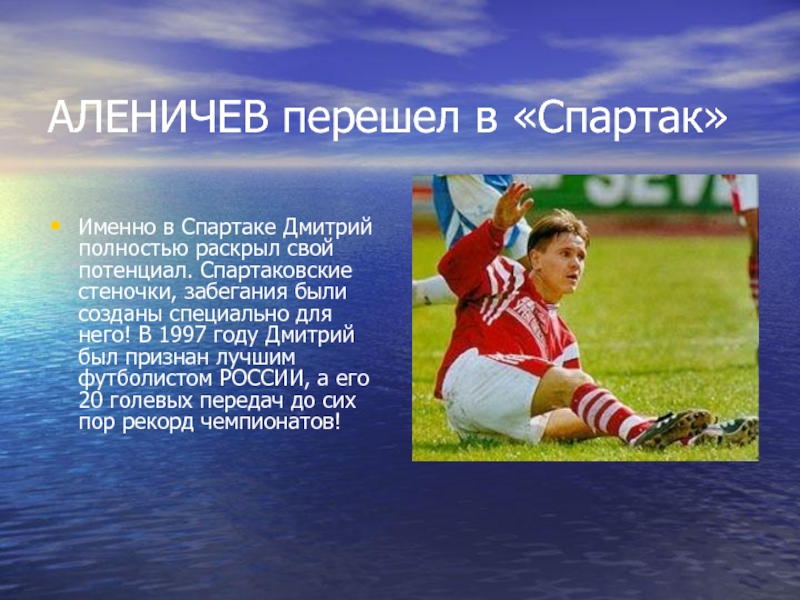Спартаковские стеночки, забегания были созданы специально для него! В 1997 году Дмитрий был признан лучшим футболистом РОССИИ, а его 20 голевых передач до сих пор рекорд чемпионатов!