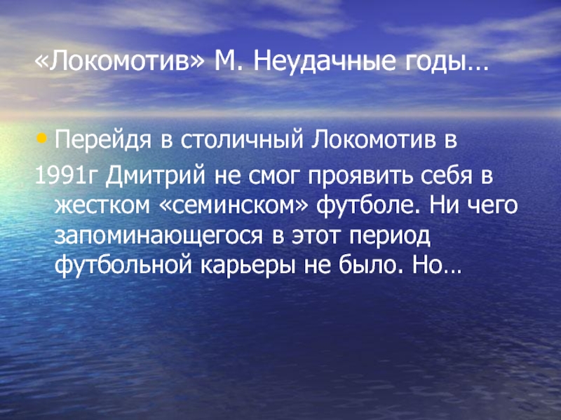 проявить себя в жестком «семинском» футболе. Ни чего запоминающегося в этот период футбольной карьеры не было. Но…
