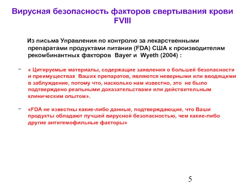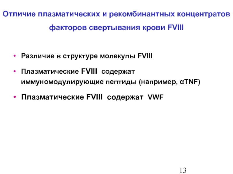 Отличие плазматических и рекомбинантных концентратов факторов свертывания крови FVIII