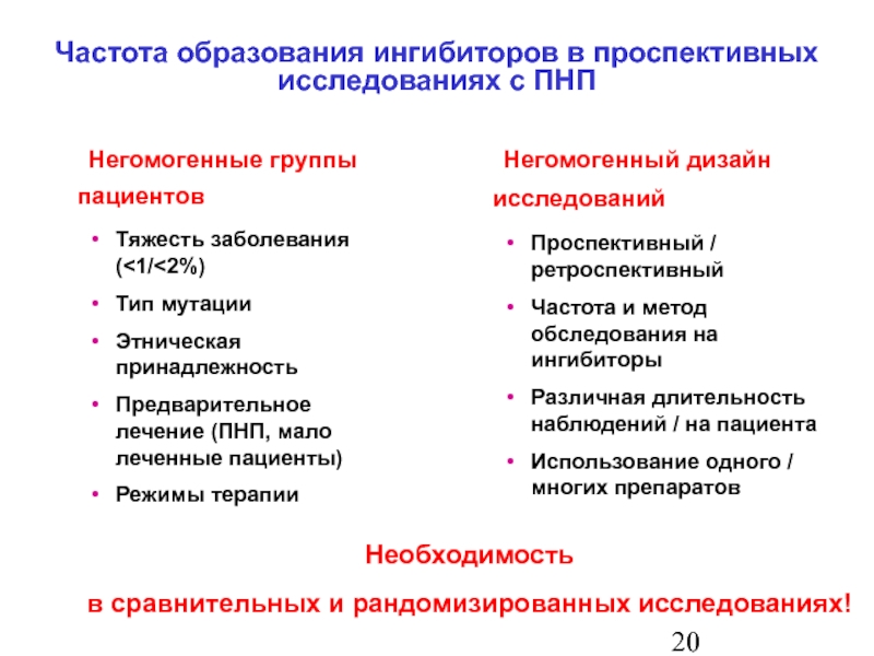 Частота образования ингибиторов в проспективных исследованиях с ПНП