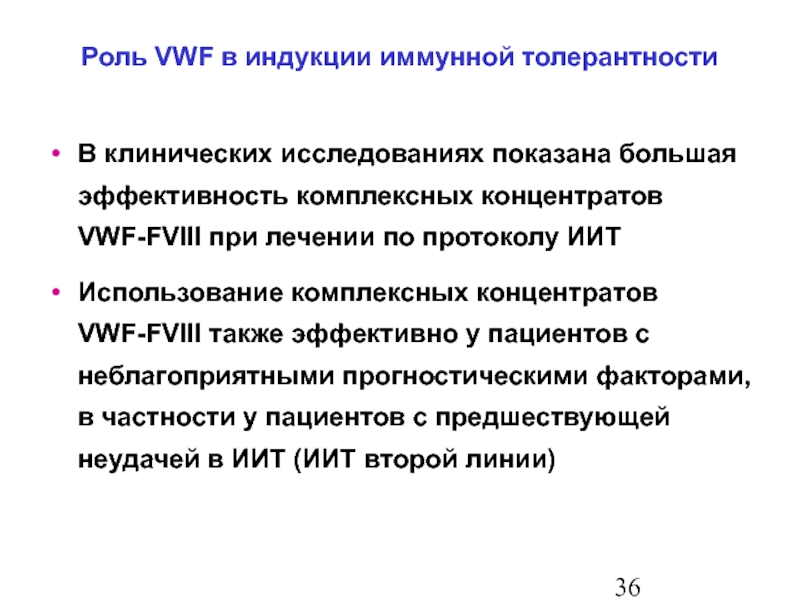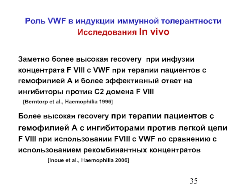 Роль VWF в индукции иммунной толерантности Исследования In vivo