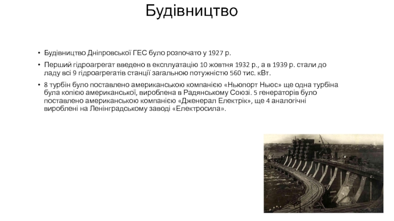 Будівництво Дніпровської ГЕС було розпочато у 1927 р.