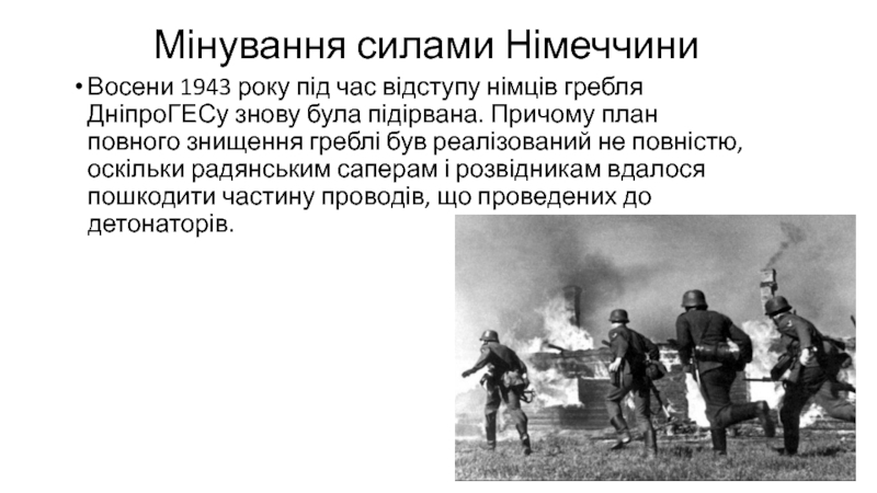 Восени 1943 року під час відступу німців гребля ДніпроГЕСу