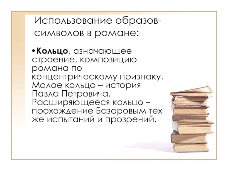 Малое кольцо – история Павла Петровича. Расширяющееся кольцо – прохождение Базаровым тех же испытаний и прозрений.