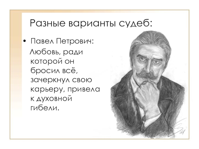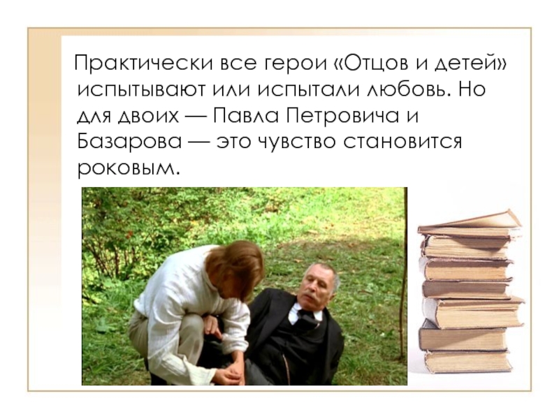 любовь. Но для двоих — Павла Петровича и Базарова — это чувство становится роковым.