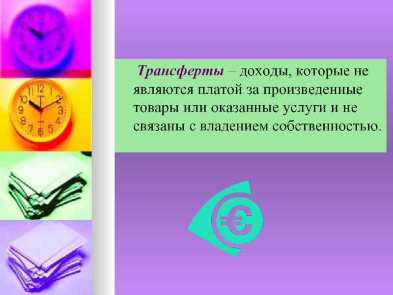 Слайд 3 Трансферты – доходы, которые не являются платой за