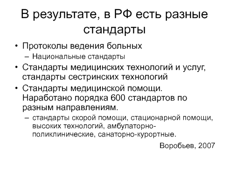 критерии оценки деятельности и т.д.) и индивидуализированностью терапии стандарты должны опираться на принципы доказательной медицины и выступать, скорее в роли СОПов, а не реального стандарта