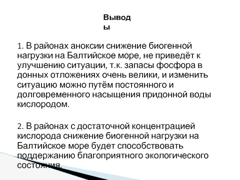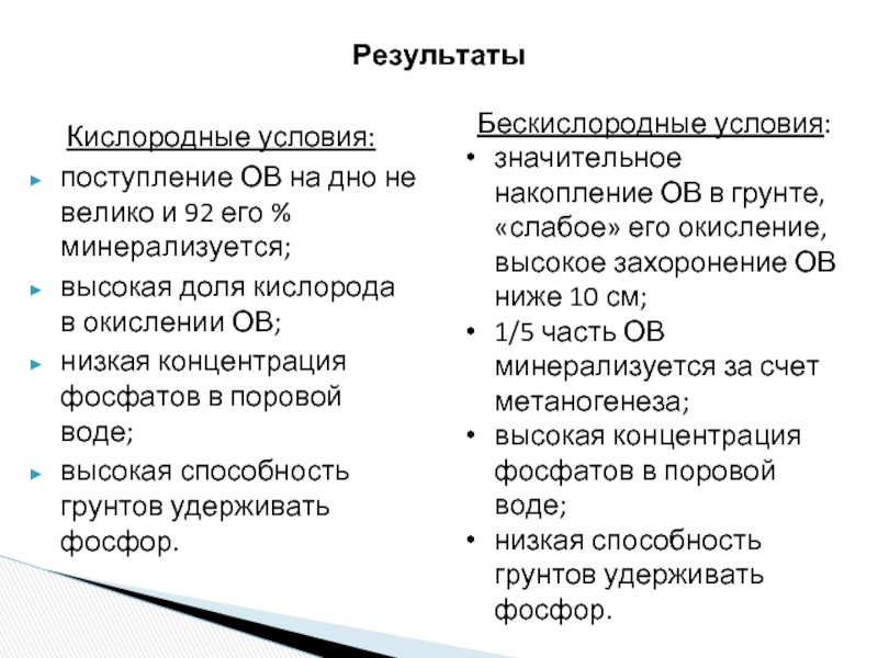 значительное накопление ОВ в грунте, «слабое» его окисление, высокое захоронение ОВ ниже 10 см;