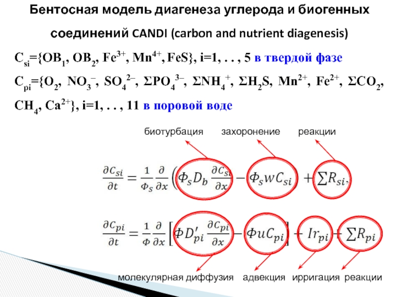 Бентосная модель диагенеза углерода и биогенных соединений CANDI (carbon and nutrient diagenesis)