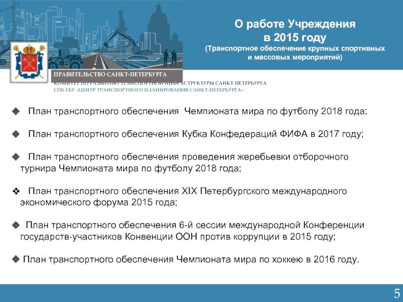 План транспортного обеспечения XIX Петербургского международного экономического форума 2015 года;