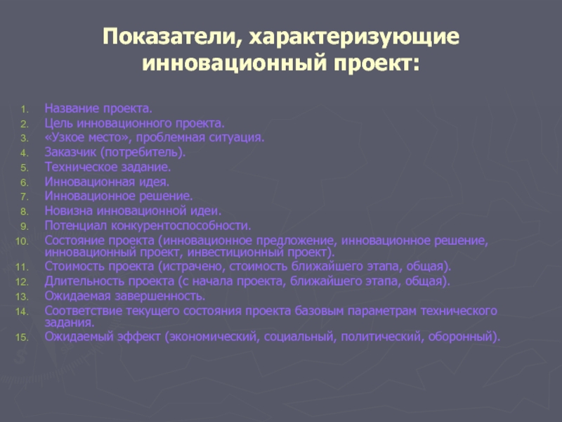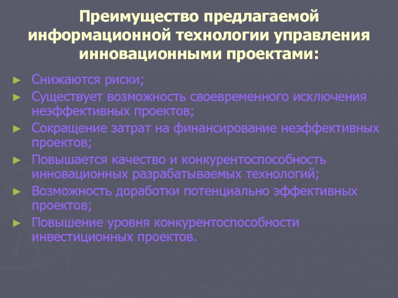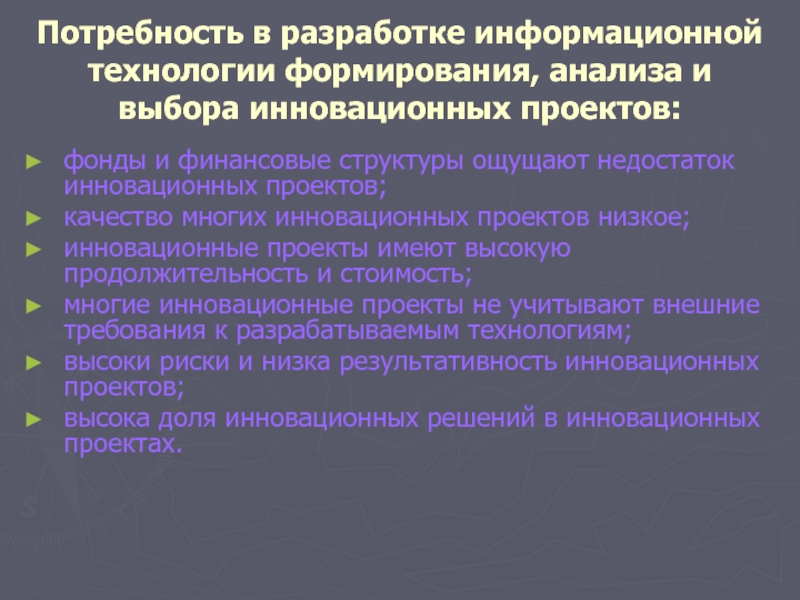 «Особенности современной информационной технологии подготовки инновационных проектов»