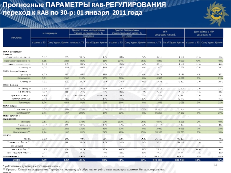 сроки перехода на RAB по МРСК (24 региона с 01.07.2010 и 25 регионов с 01.01.2011)