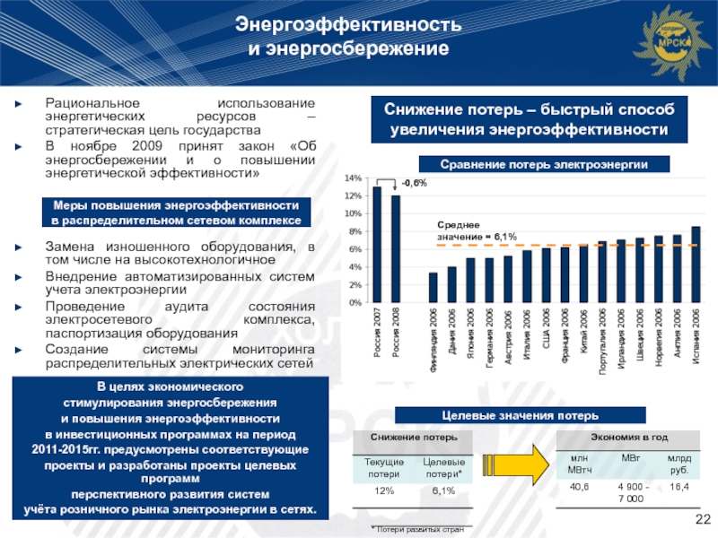 В ноябре 2009 принят закон «Об энергосбережении и о повышении энергетической эффективности»