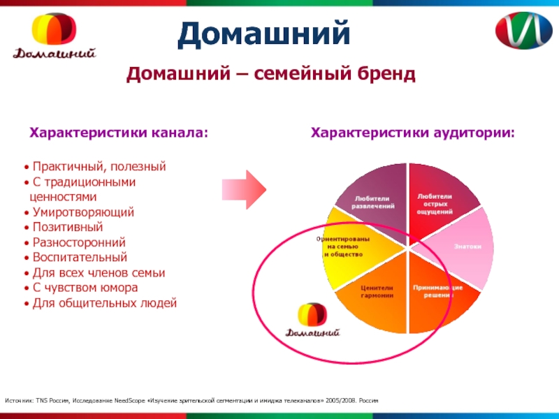 Источник: TNS Россия, Исследование NeedScope «Изучение зрительской сегментации и имиджа телеканалов» 2005/2008. Россия