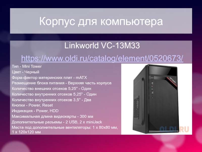 Места под дополнительные вентиляторы: 1 x 80x80 мм, 1 x 120x120 мм