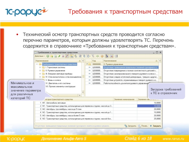 Загрузка требований к ТС в справочник