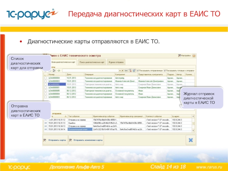 Отправка диагностических карт в ЕАИС ТО