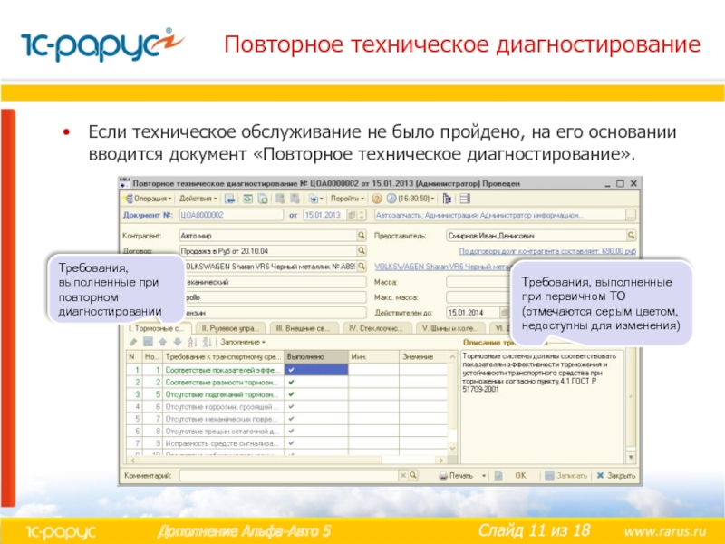 Требования, выполненные при повторном диагностировании