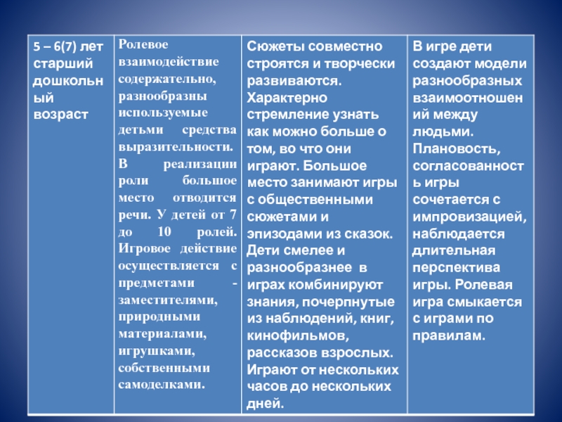 Ведущий вид деятельности - сюжетно-ролевая игра.
