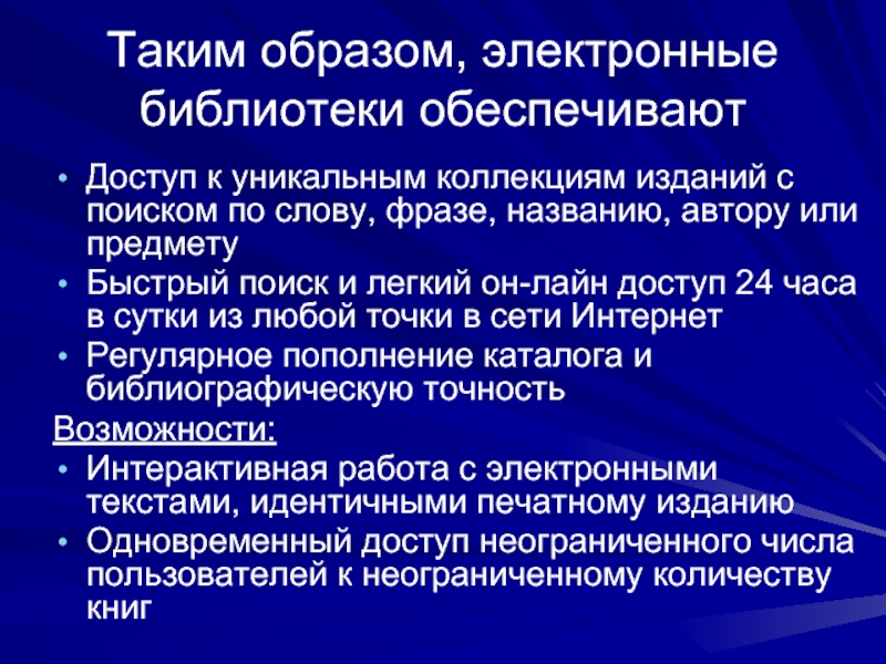 Слайд 36Таким образом, электронные библиотеки обеспечивают