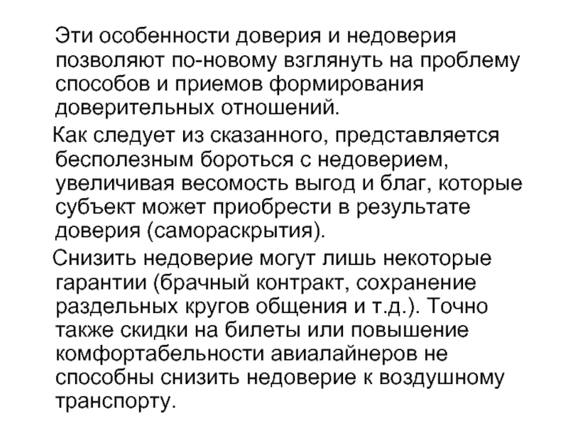 Слайд 33 Во многих отношениях доверие и недоверие зачастую не имеет