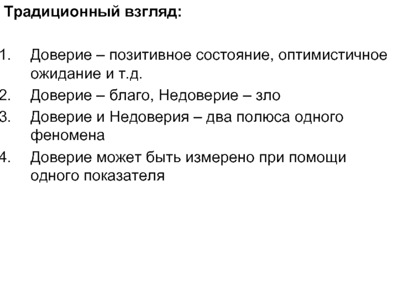 Доверие – позитивное состояние, оптимистичное ожидание и т.д.