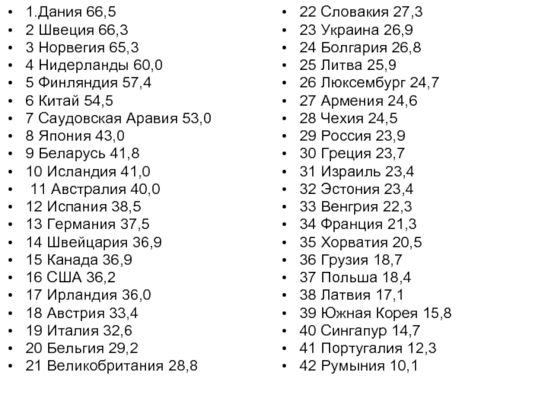 Слайд 51.Дания 66,5