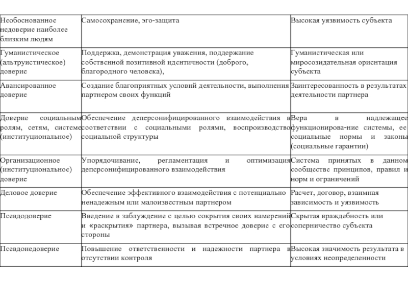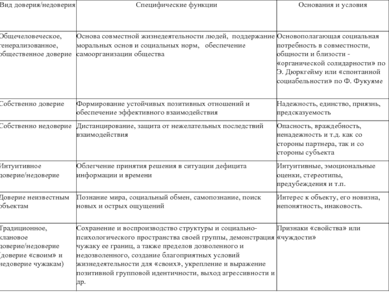 Слайд 8 Общие признаки доверия и недоверия