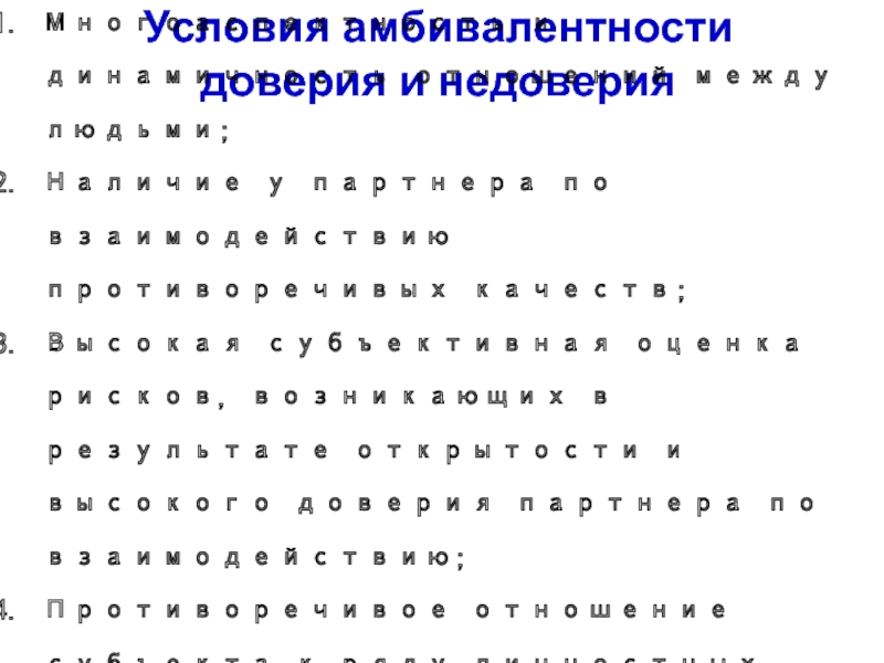 Слайд 9Условия амбивалентности доверия и недоверия